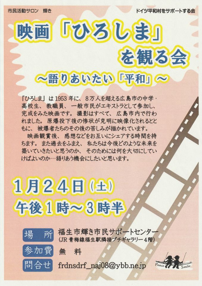 2025年度の最後の事業として、私たちは『映画「ひろしま」を観る会~語りあいたい「平和」』を、1月24日(土)午後1時から3時半に予定しています。原爆投下からおよそ8年で作られた映画ですが、8万人を超える広島市民がエキストラとして出演し、私たちに何を報せ、訴えたかったのか…