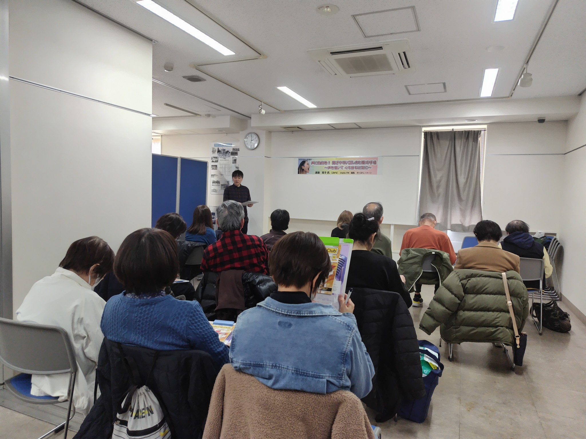 講師は社会の中でやわらかなクッションのような存在をめざして団体を立ち上げ、読書会を月1回開き市民活動サロン「輝き」で紹介した「うたたね」「蜘蛛の糸」「杜子春」の本の内容と魅力について発表されました。今後の活動予定と参加の注意点について説明し、講師の好きな本のジャンルや読みやすい本の紹介等について参加者と意見交換をされました。