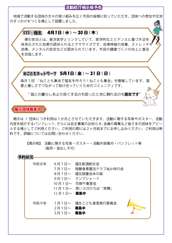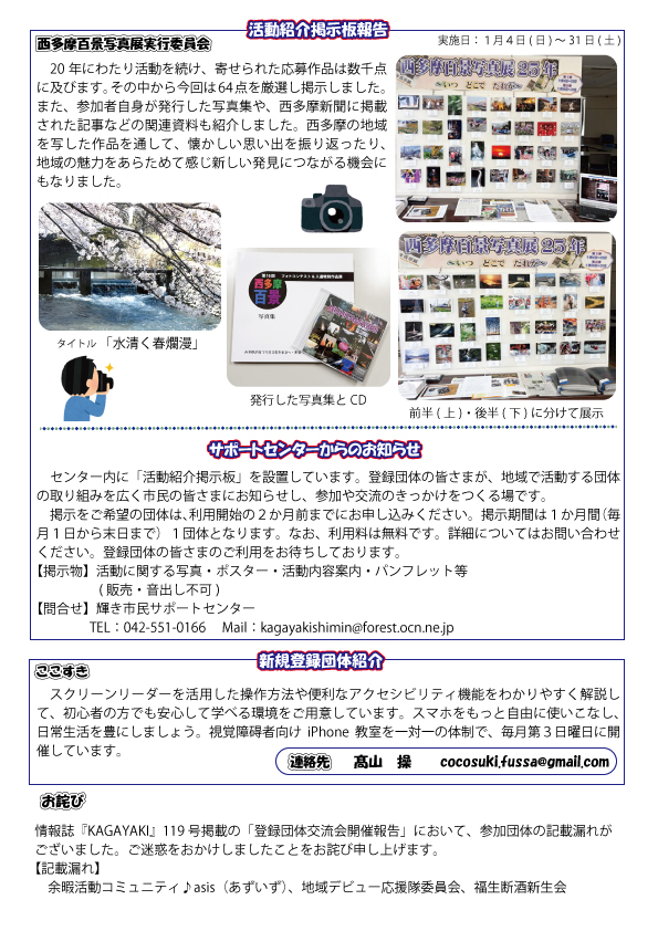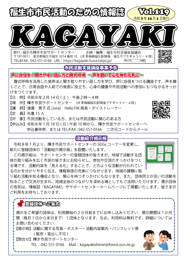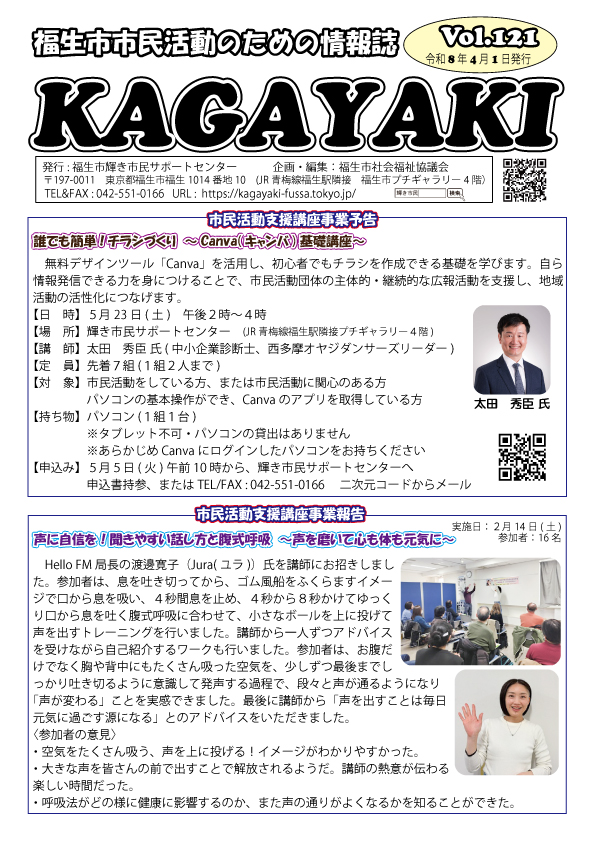 | センターについて | 会議室予約状況 | 広報誌「KAGAYAKI」 | 講座・イベント | 市からのお知らせ | ちょっと教えてQ&A |