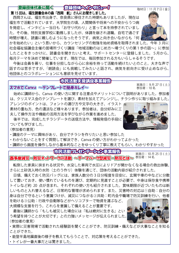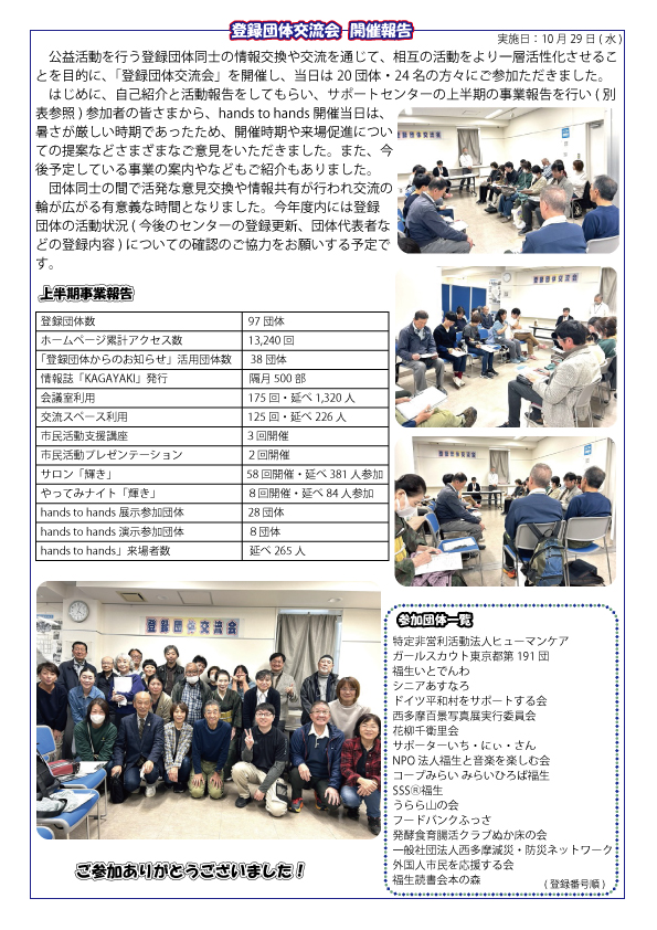 | 施設・設備 | 団体情報・登録 | 登録団体からのお知らせ | 助成金 | アクセス | リンク集 |